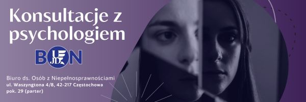 Biuro ds. Osób z Niepełnosprawnościami zaprasza na indywidualne konsultacje psychologiczne, podczas których będzie można w spokojnej, bezpiecznej atmosferze porozmawiać o tym, co jest dla Ciebie ważne. Spotkanie ma na celu lepsze zrozumienie Twojej sytuacji, potrzeb oraz możliwości dalszego wsparcia.