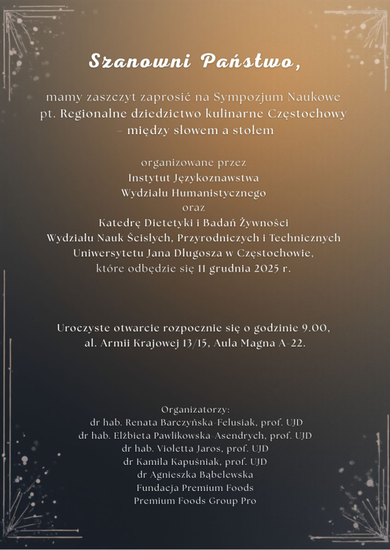 Sympozjum „Regionalne dziedzictwo kulinarne Częstochowy – między słowem a stołem"